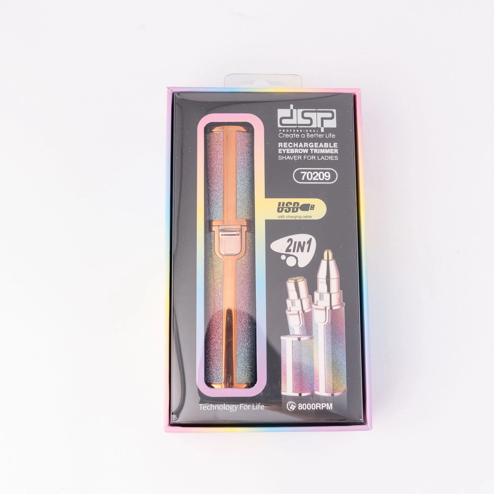 موزن ابرو و صورت دی اس پی مدل 70209 یک دستگاه کاربردی برای اصلاح موهای زائد صورت و ابروها است. این محصول با طراحی ارگونومیک و رنگبندی متنوع، بهویژه رنگ هفترنگ اکلیلی، جذابیت ظاهری بالایی دارد.