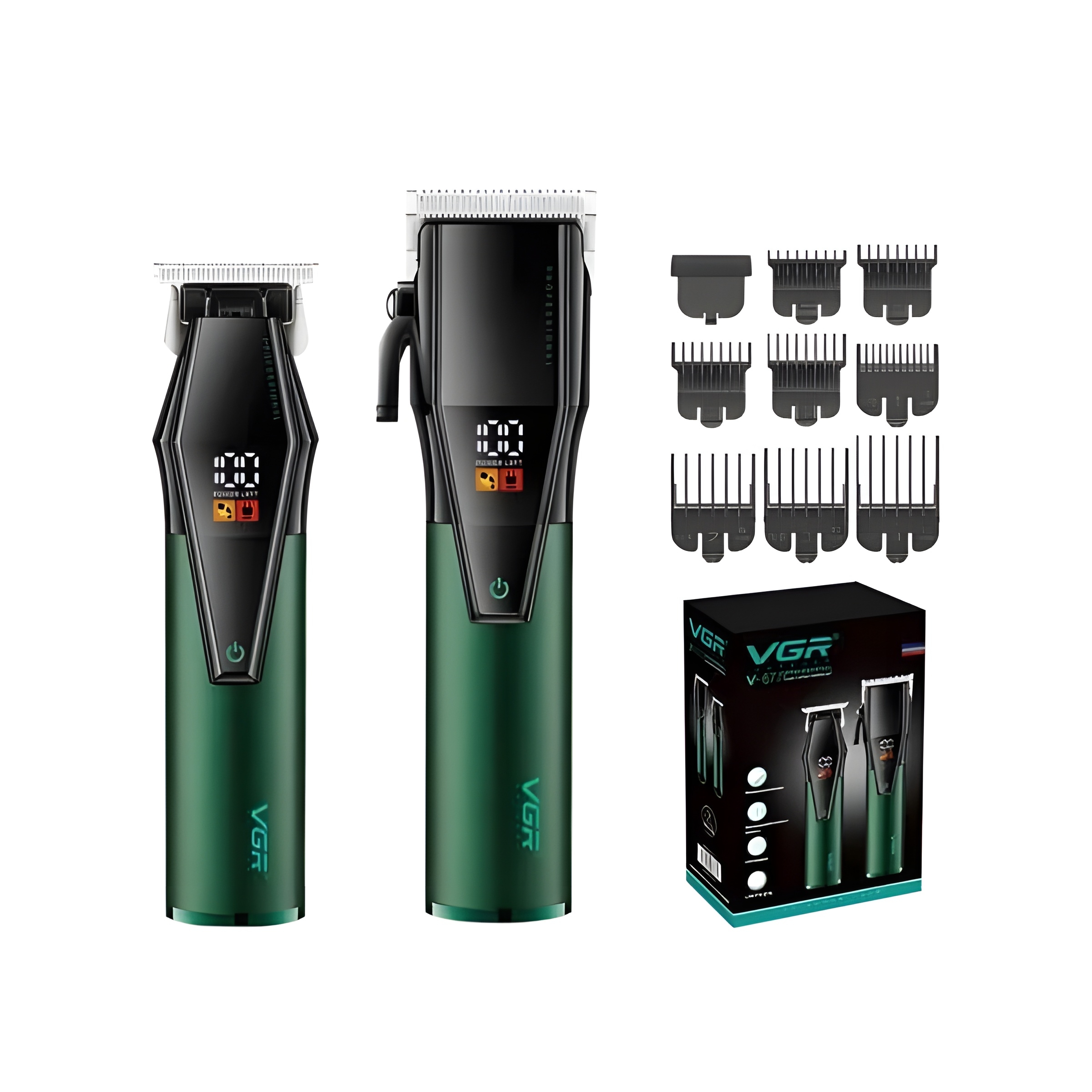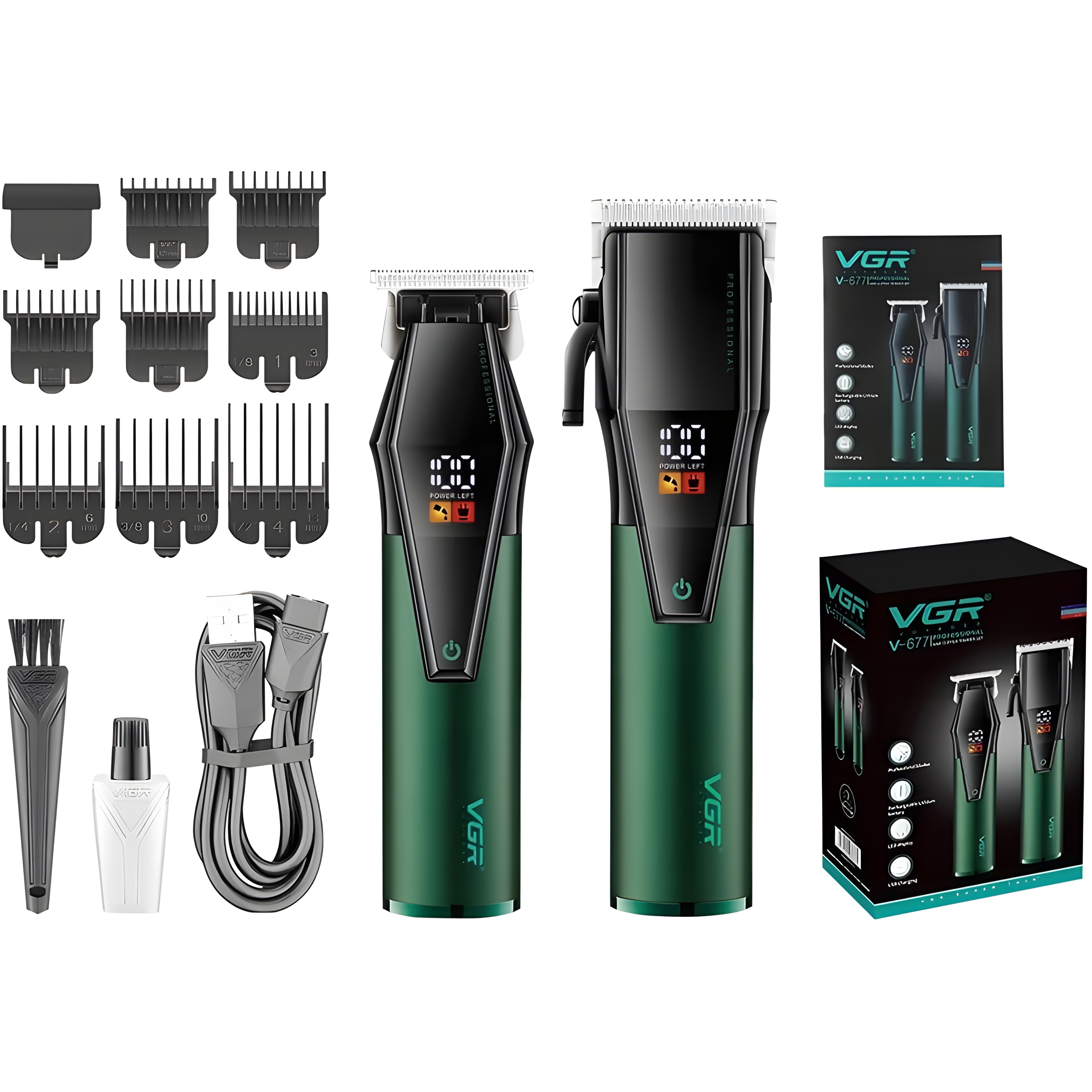 ست ماشین اصلاح سر و صورت دوقلوی وی جی آر مدل V-677 شامل دو دستگاه مجزا برای اصلاح موهای سر و صورت است: یک دستگاه حجم زن و یک دستگاه خط زن. هر دو دستگاه دارای طراحی ارگونومیک و تیغههایی از جنس استیل ضد زنگ هستند که دوام و کارایی بالایی را فراهم میکنند.