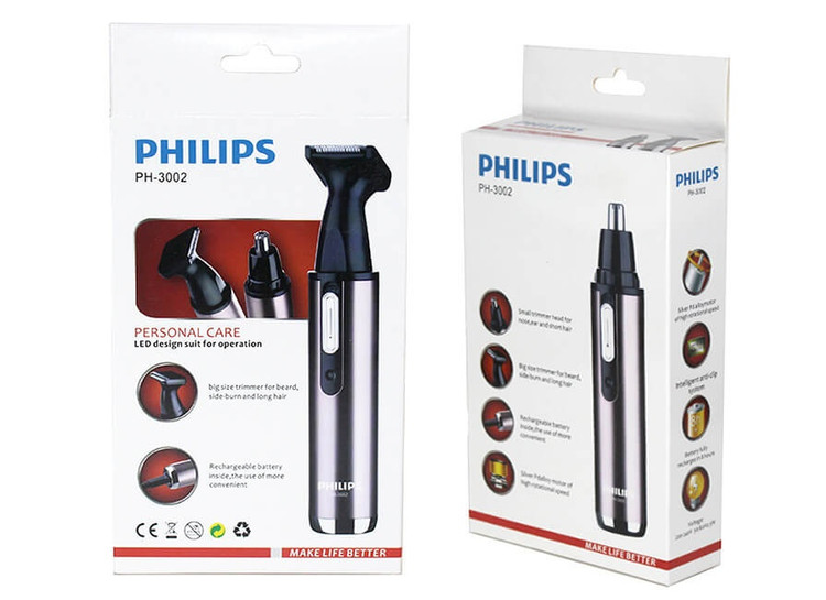 موزن گوش و بینی دوکاره فیلیپس مدل PH-3002 یک دستگاه اصلاح شخصی است که برای اصلاح موهای زائد گوش، بینی و همچنین خطزنی طراحی شده است.