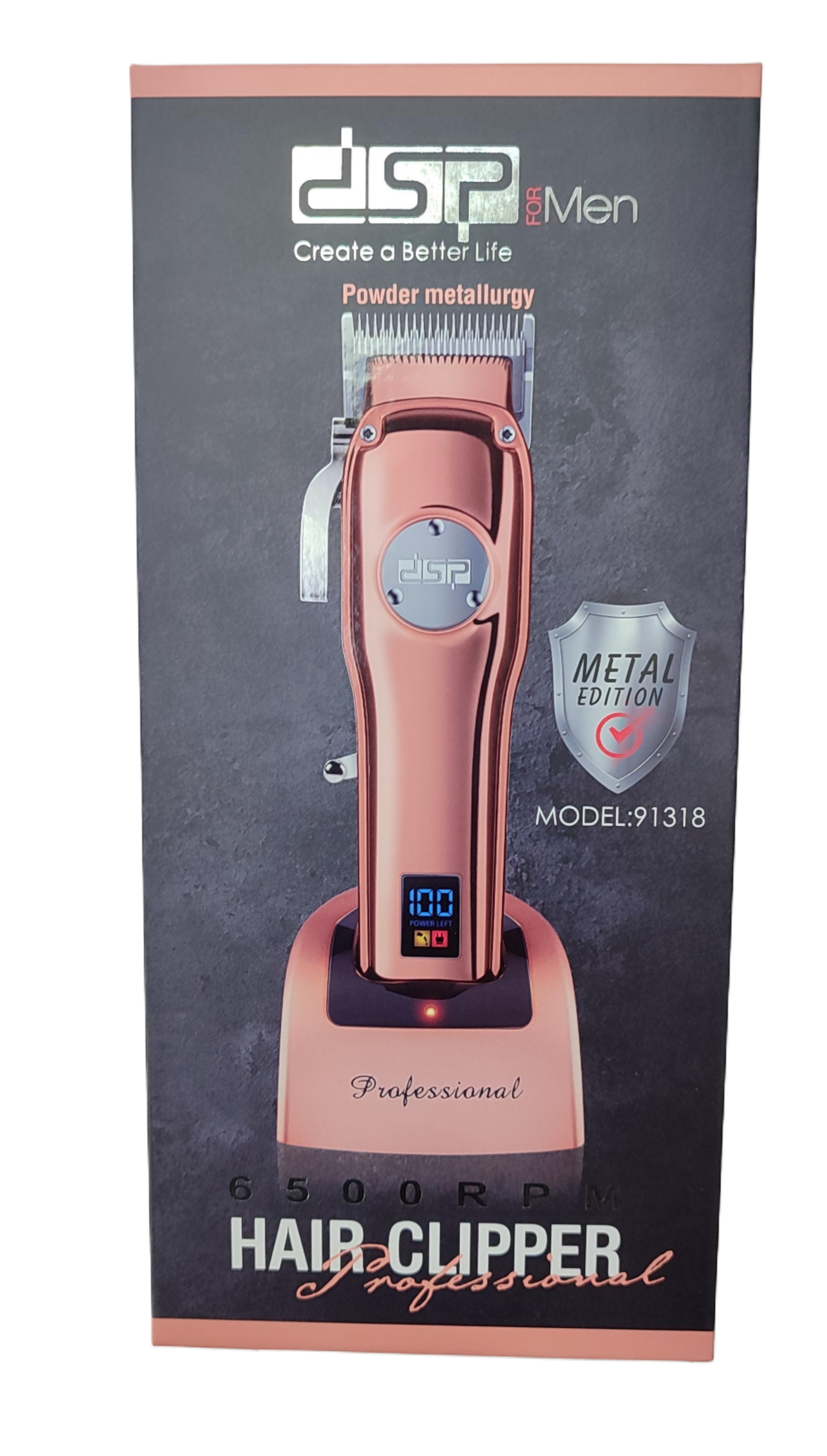 ماشین اصلاح DSP 91318 با موتور قدرتمند ۶۵۰۰ دور در دقیقه، باتری لیتیومی ۲۰۰۰ mAh و ۸ شانه قابل تنظیم، برای استفاده حرفهای در خانه یا سالن طراحی شده است . این دستگاه دارای بدنه محکم ABS، تیغه استیل ضدزنگ و نمایشگر دیجیتال است.