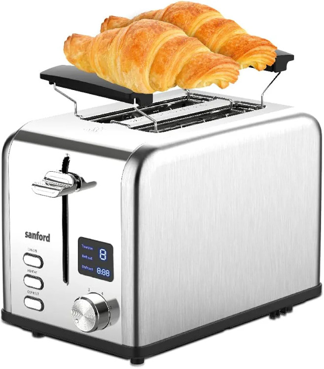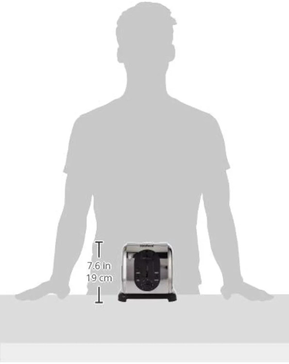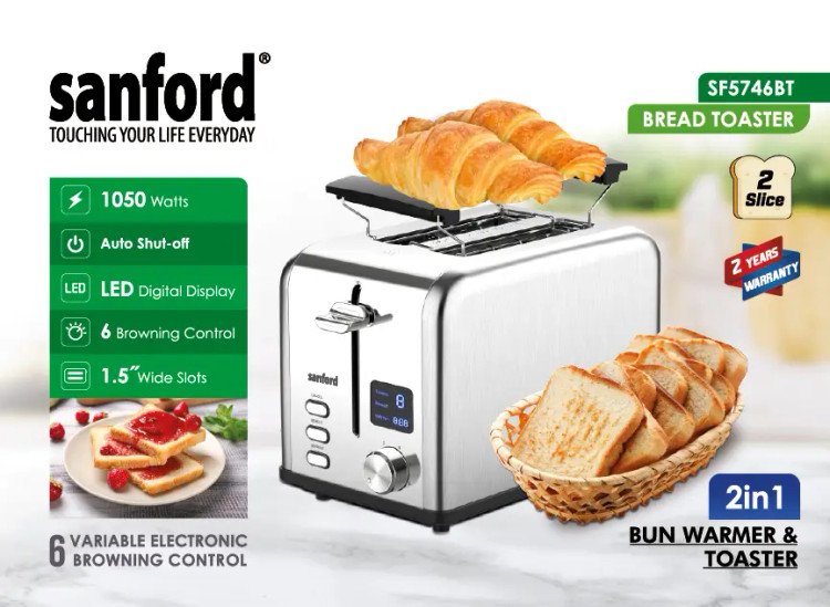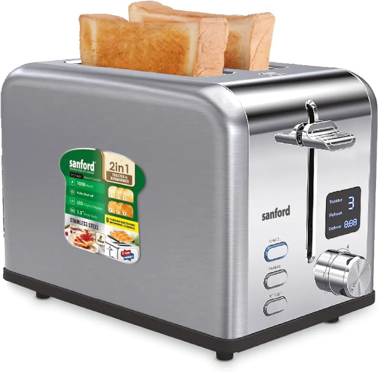 این توستر از برند Sanford یک دستگاه دوکاره (توستر و گرمکن نان) با طراحی مدرن و بدنه استیل است که به دلیل توان ۱۰۵۰ واتی، سرعت عمل بالایی در برشته کردن دارد.