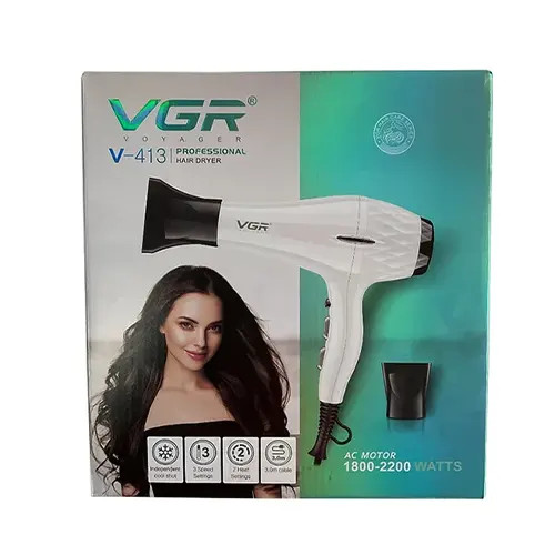 سشوار حرفهای وی جی آر مدل V-413 یک دستگاه با کیفیت و قدرتمند است که برای استفاده در سالنهای آرایشی و مصارف خانگی مناسب میباشد. ویژگیهای کلیدی این سشوار عبارتاند از: