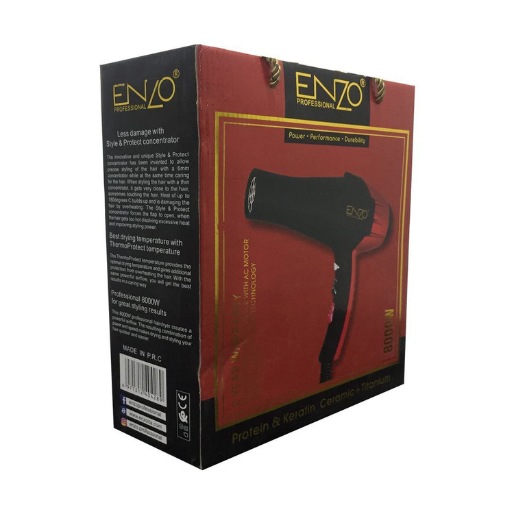 سشوار انزو EN-6109، سشوار 8000W انزو، سشوار آیونیک حرفهای، سشوار تنظیم سرعت، سشوار سبک و خوشدست انزو، سشوار یون منفی ۳ حالت، سشوار حرفهای خانگی Enzo